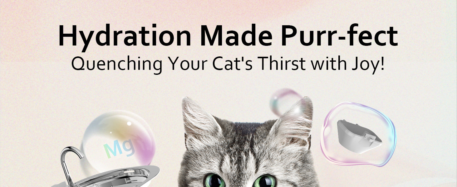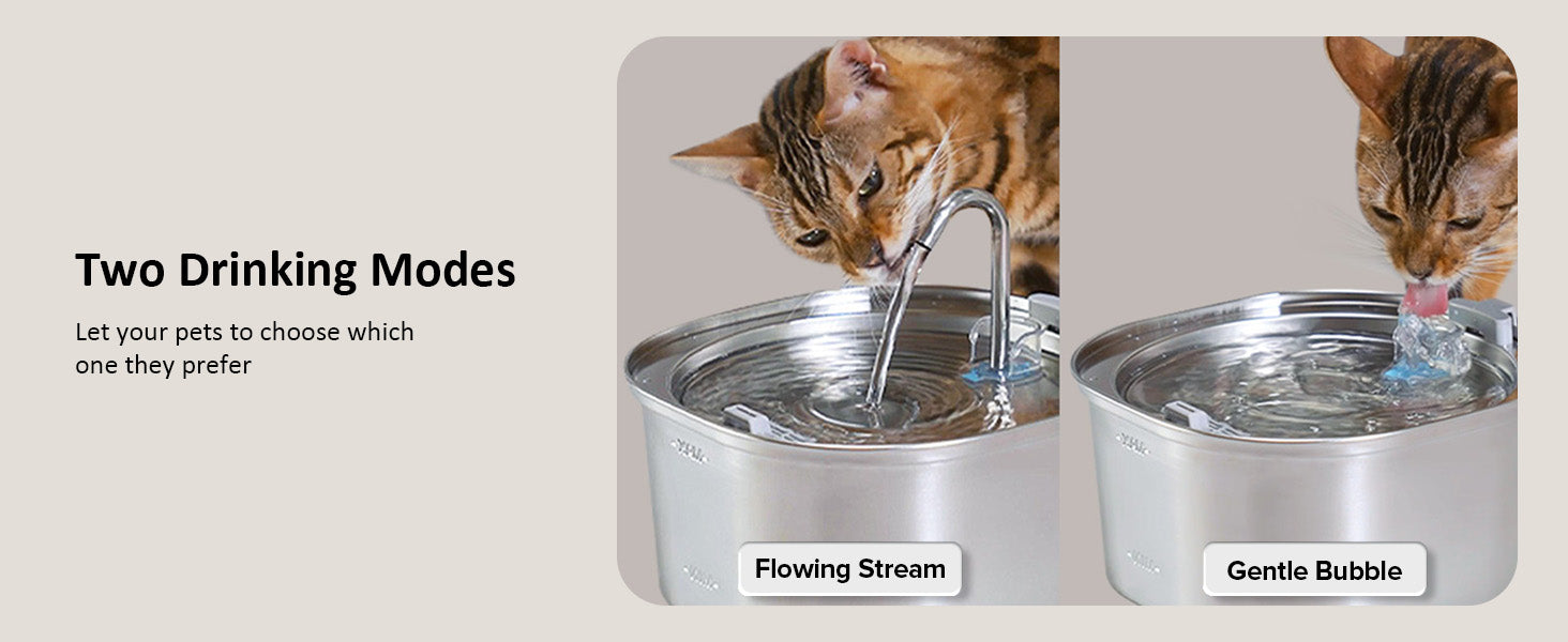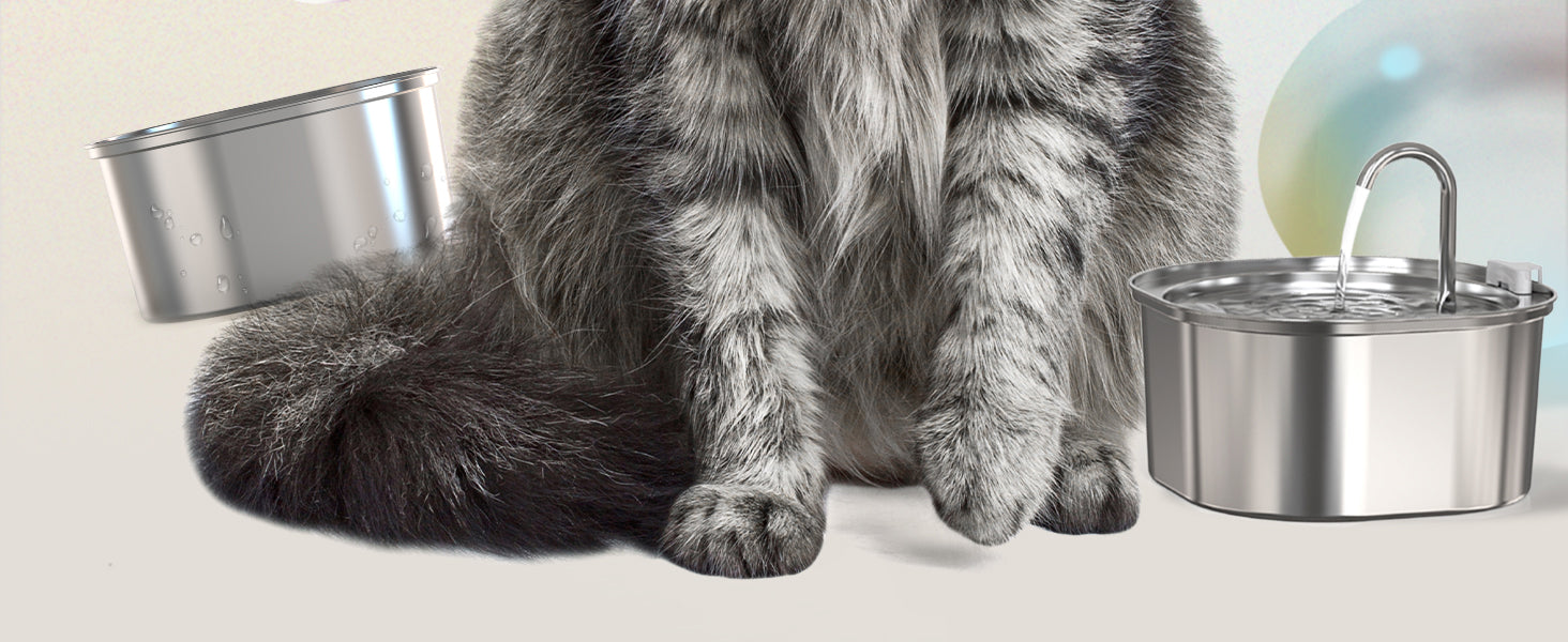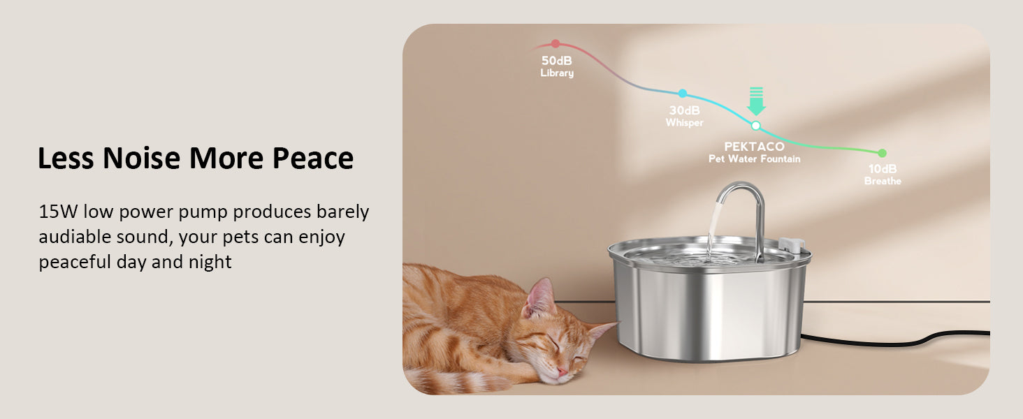 - 【Ultra-Quiet Water Pump】 Enjoy peaceful and uninterrupted days and nights with our ultra-quiet stainless steel cat fountain, equipped with a low-power pump that produces barely audible sound (below 20dB).