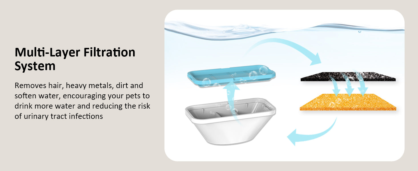 - 【Advanced Filtration System】Utilizing pre-sponge filtration, along with activated carbon and ionic resin, our system creates a flawless water circulation process that ensures your pet's water is always pure and free of harmful impurities.