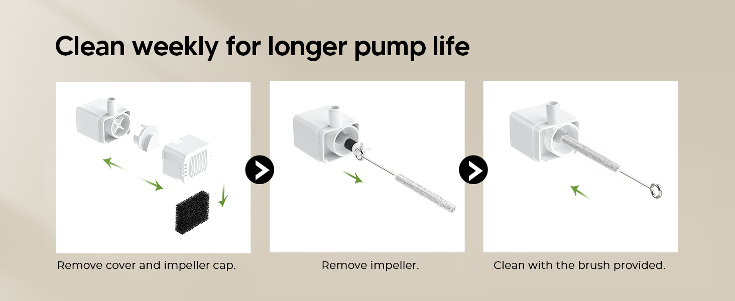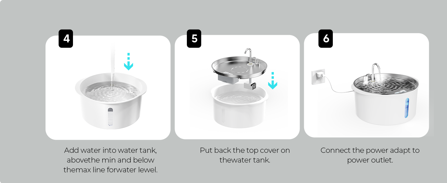 Easy to clean and maintain: The detachable design of the dog waterer makes cleaning a breeze. The water pump of the dog fountain can be disassembled effortlessly to thoroughly clean the interior without worrying about tangled wires.